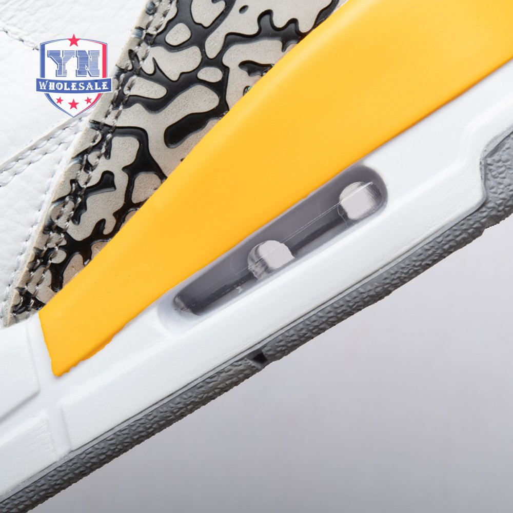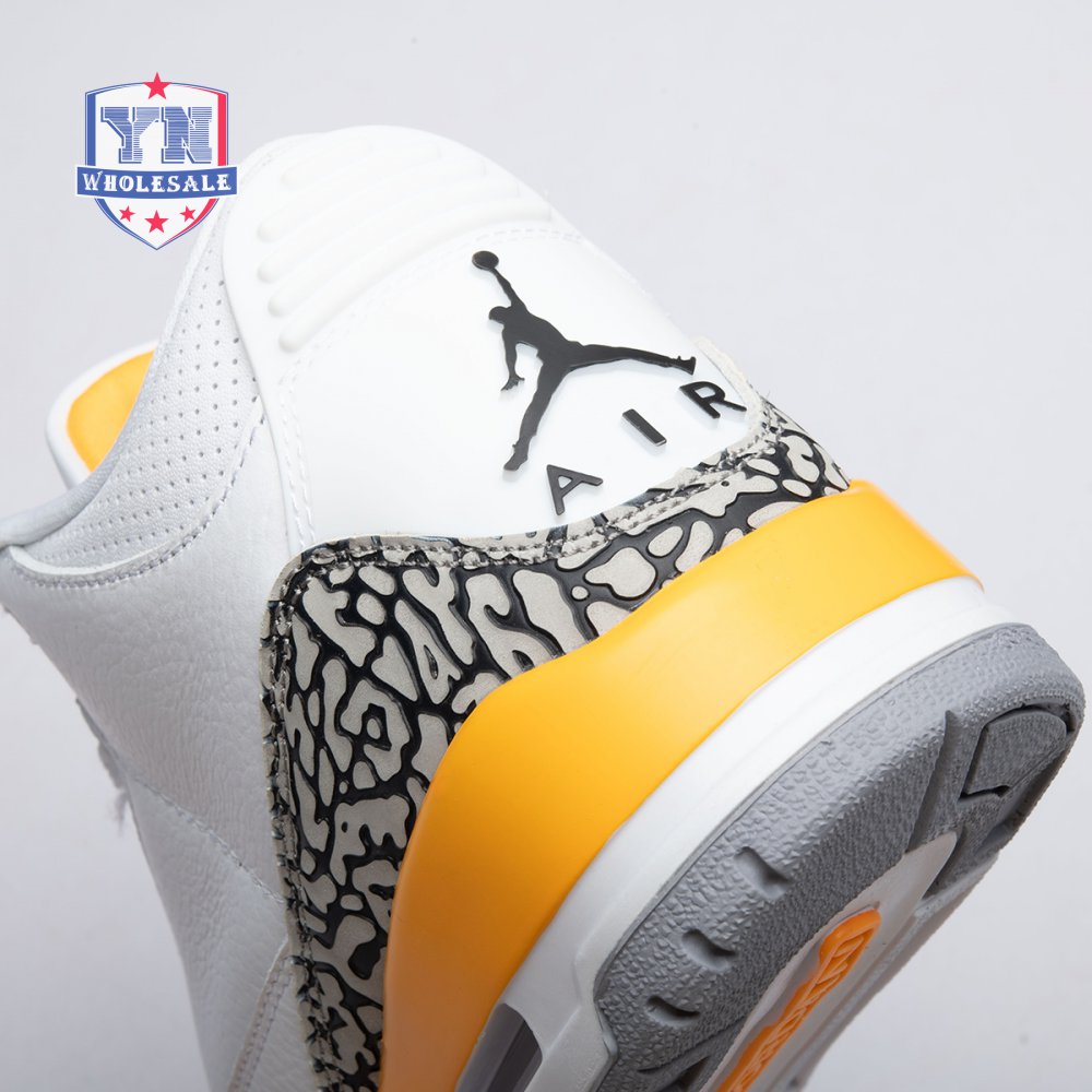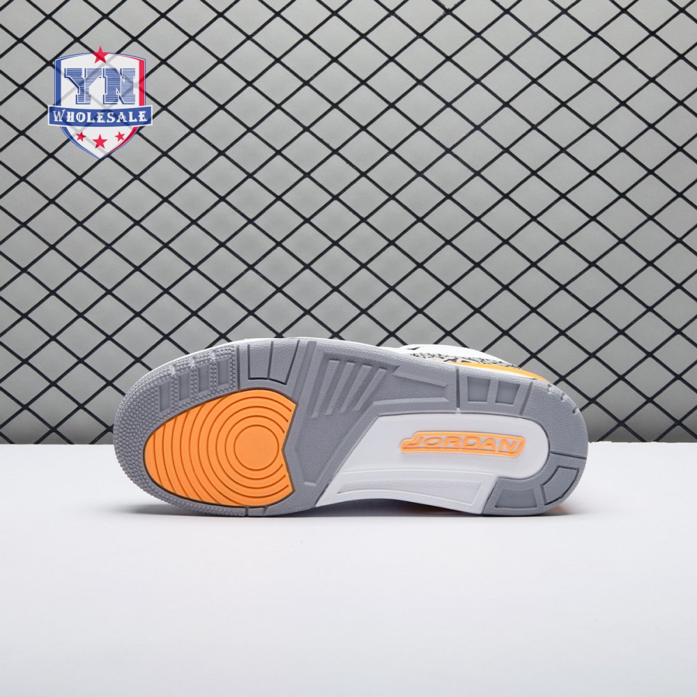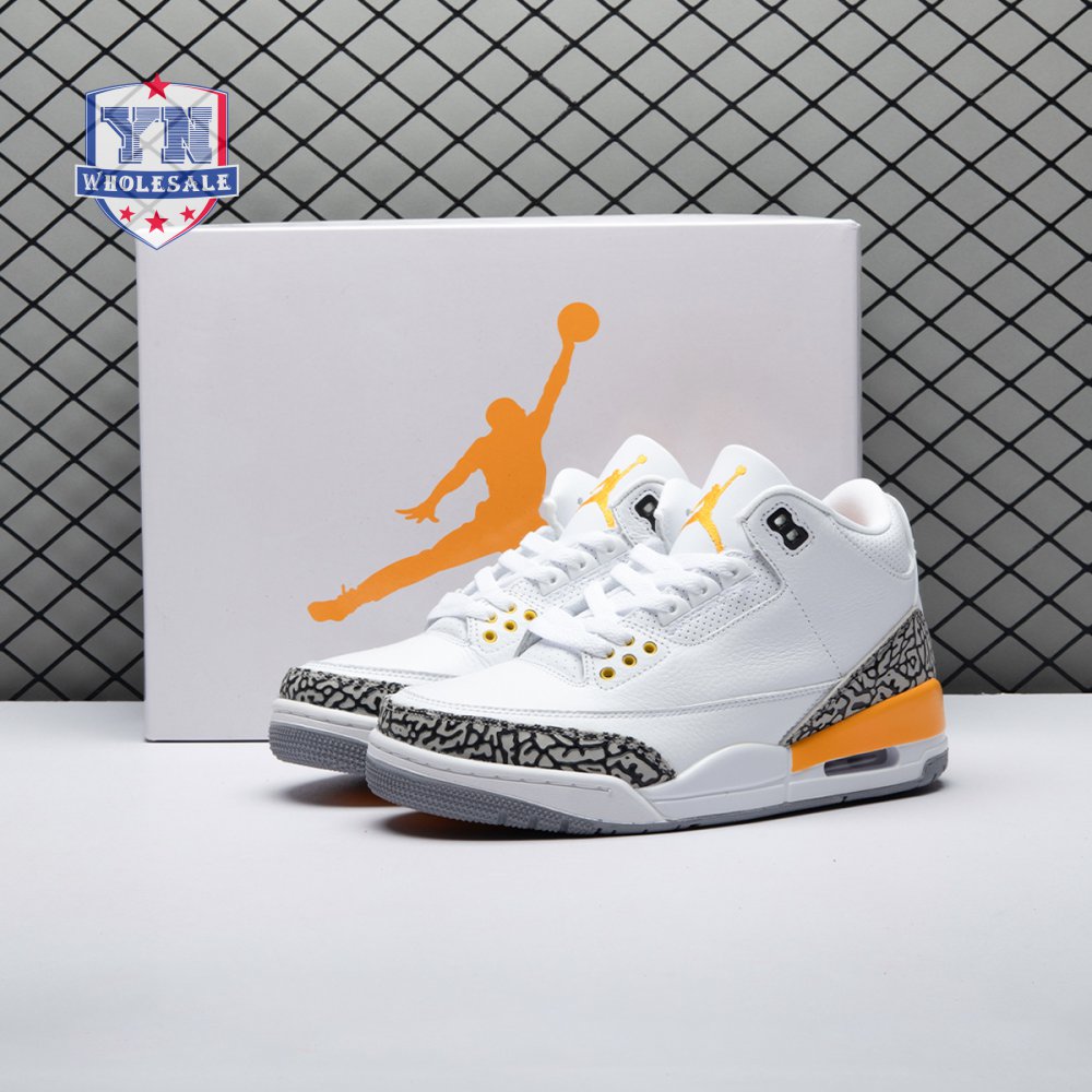 The women"s Air Jordan 3 Retro "Laser Orange" features an OG-inspired look, highlighted by a single pop of color on an otherwise neutral design. The AJ3"s signature elephant print overlays reinforce a white tumbled leather upper, marked with embossed Jumpman branding on the molded heel panel. A second Jumpman icon adorns the tongue in Laser Orange embroidery, matching the sneaker"s midsole wedge and lower eyelets.