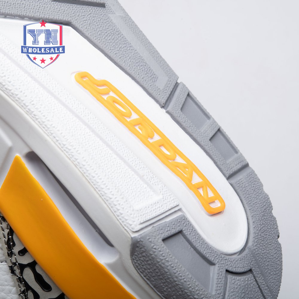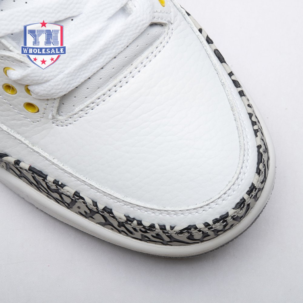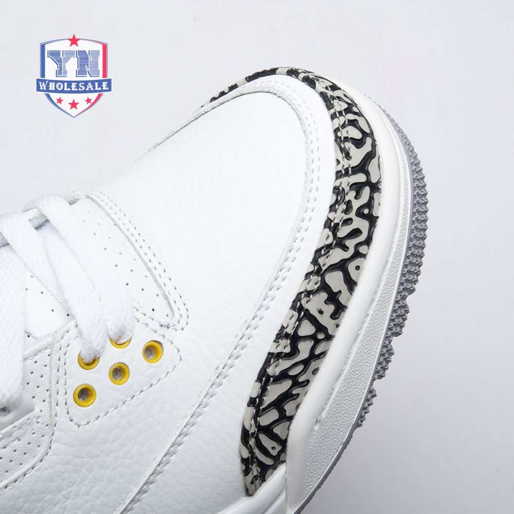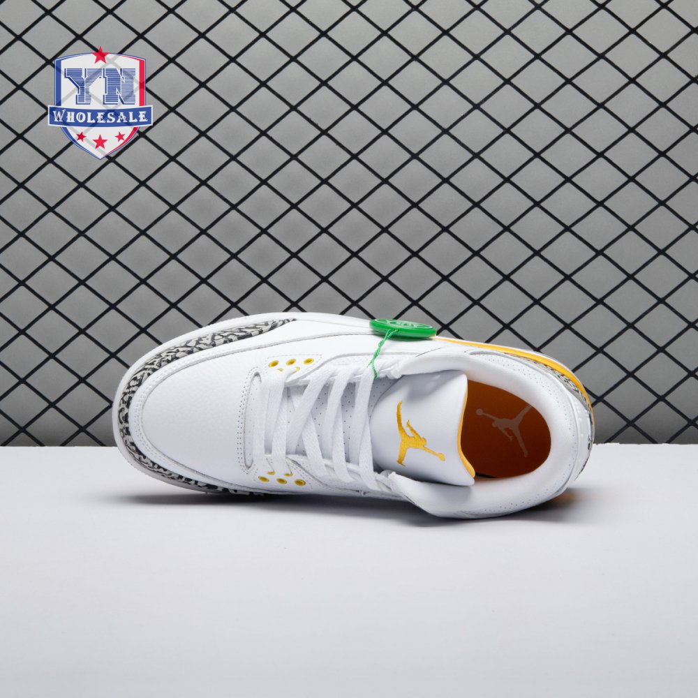 The women"s Air Jordan 3 Retro "Laser Orange" features an OG-inspired look, highlighted by a single pop of color on an otherwise neutral design. The AJ3"s signature elephant print overlays reinforce a white tumbled leather upper, marked with embossed Jumpman branding on the molded heel panel. A second Jumpman icon adorns the tongue in Laser Orange embroidery, matching the sneaker"s midsole wedge and lower eyelets.