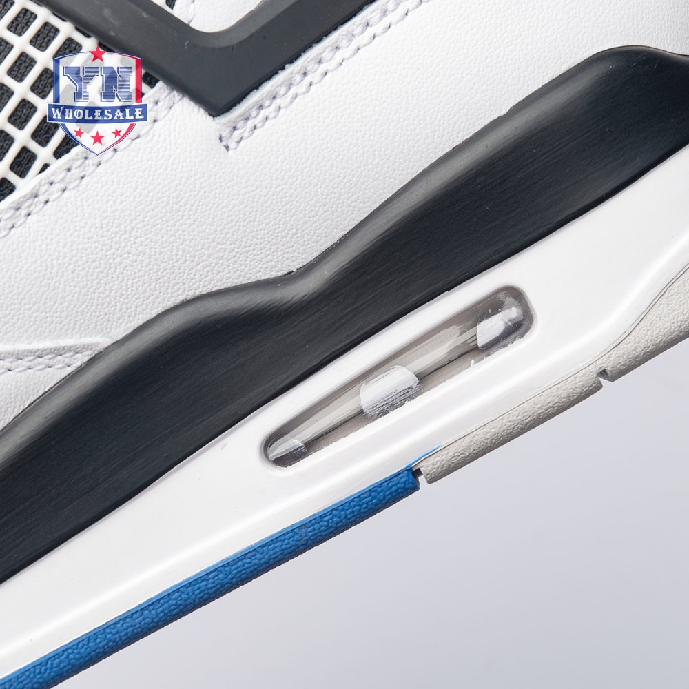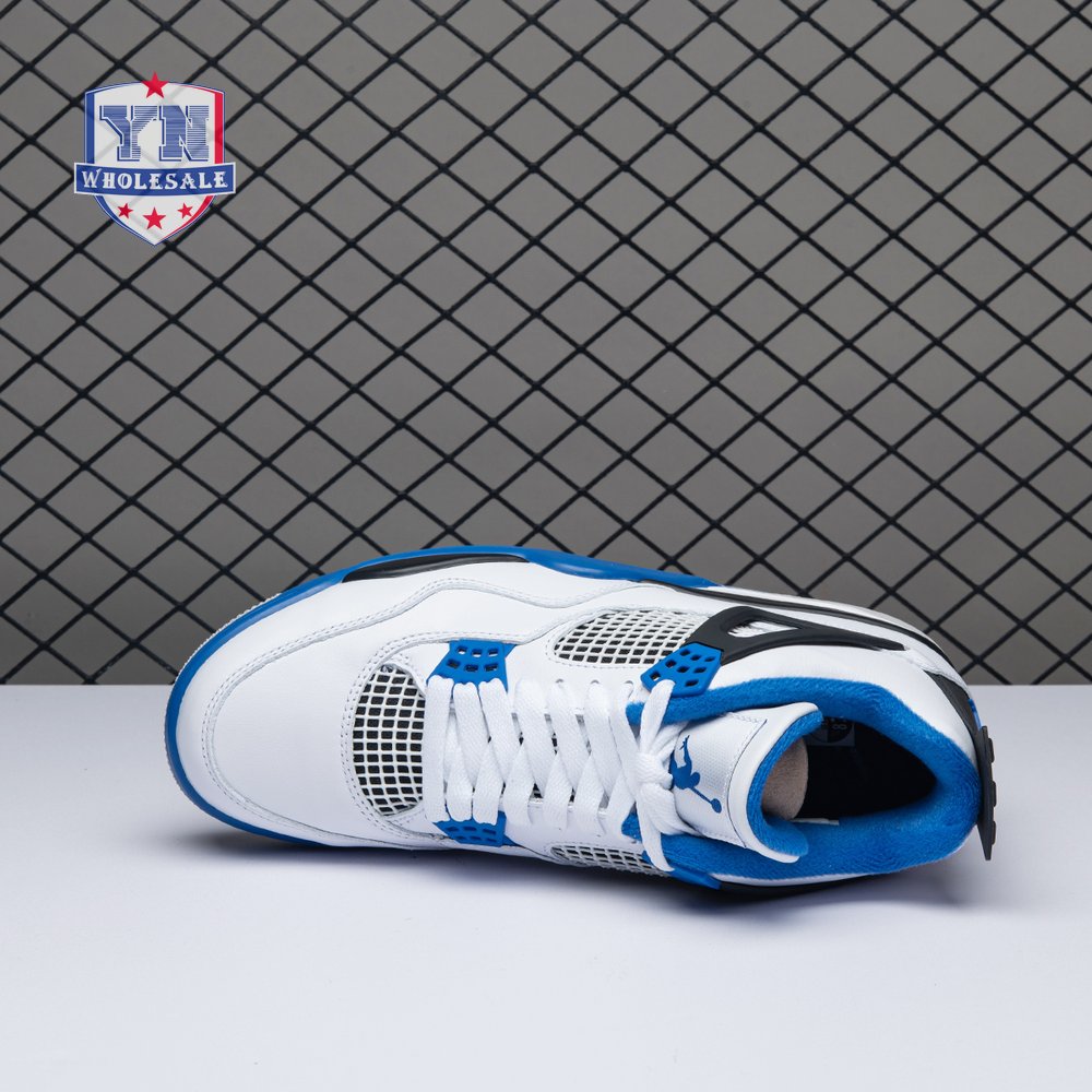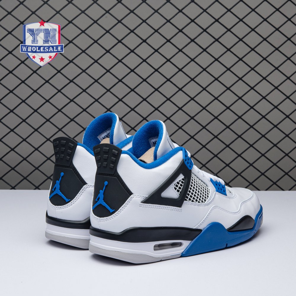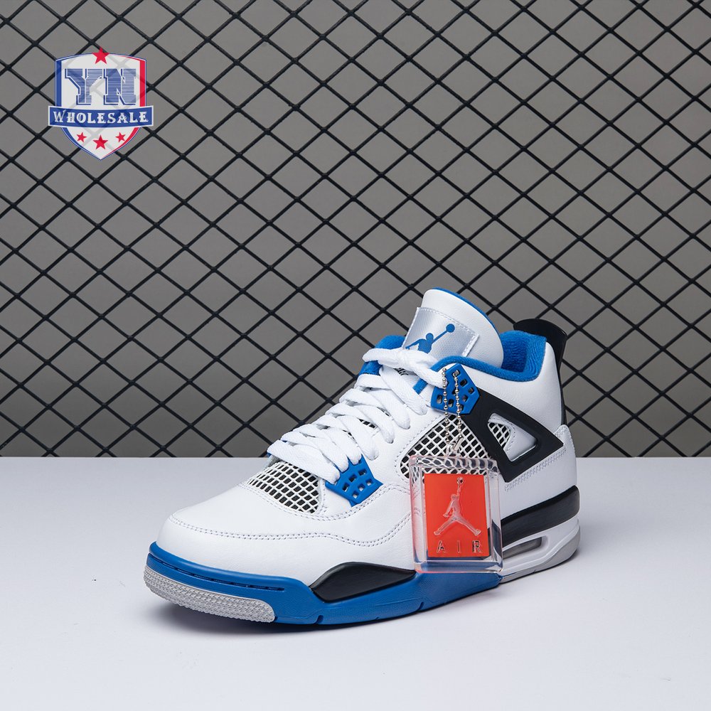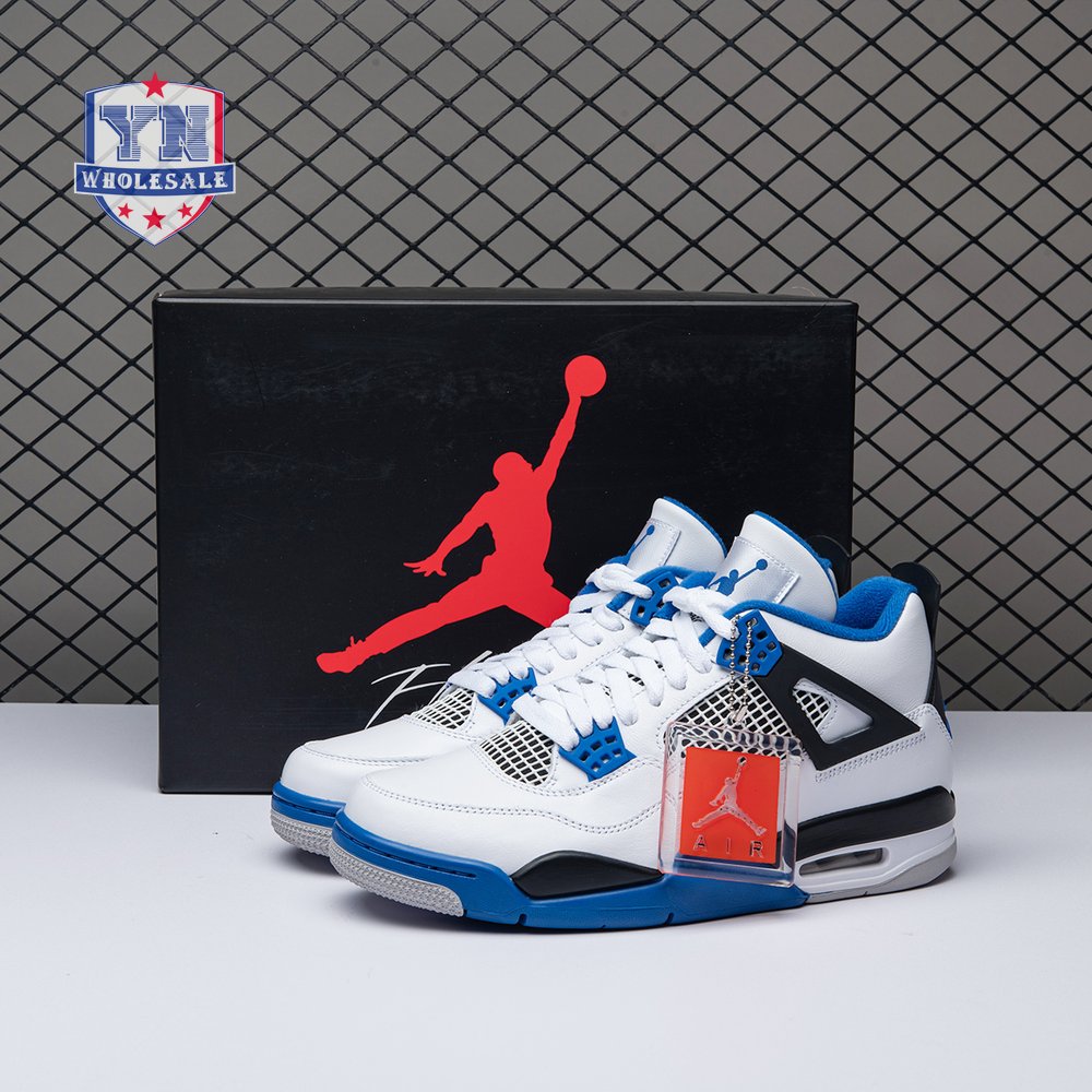 The Air Jordan 4 Retro "Motorsports" is inspired by a 2006 friends and family colorway created for the 4th anniversary of MJ"s Motorsport"s Racing team. Released to the general public in March of 2017, the sneaker incorporates the teams" white, black, and varsity royal blue colors, but removes the Mars Blackmon heel accent that graced the 2006 sneake. An Air Jordan 4 Retro 'Motorsports Alternate," released a few months later in a black colorway.