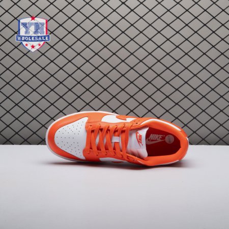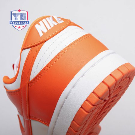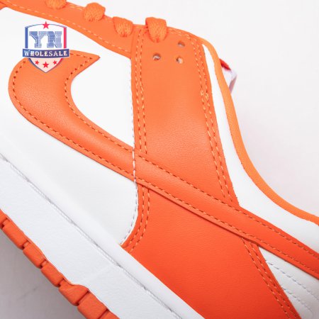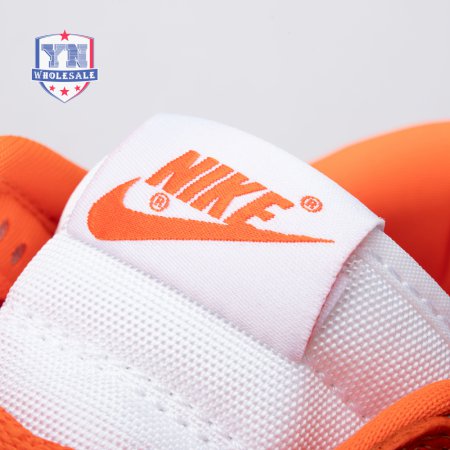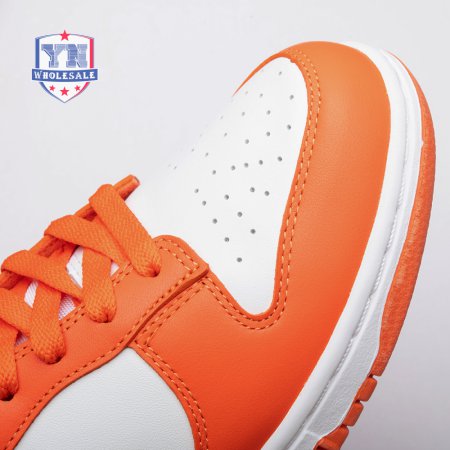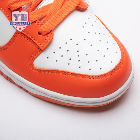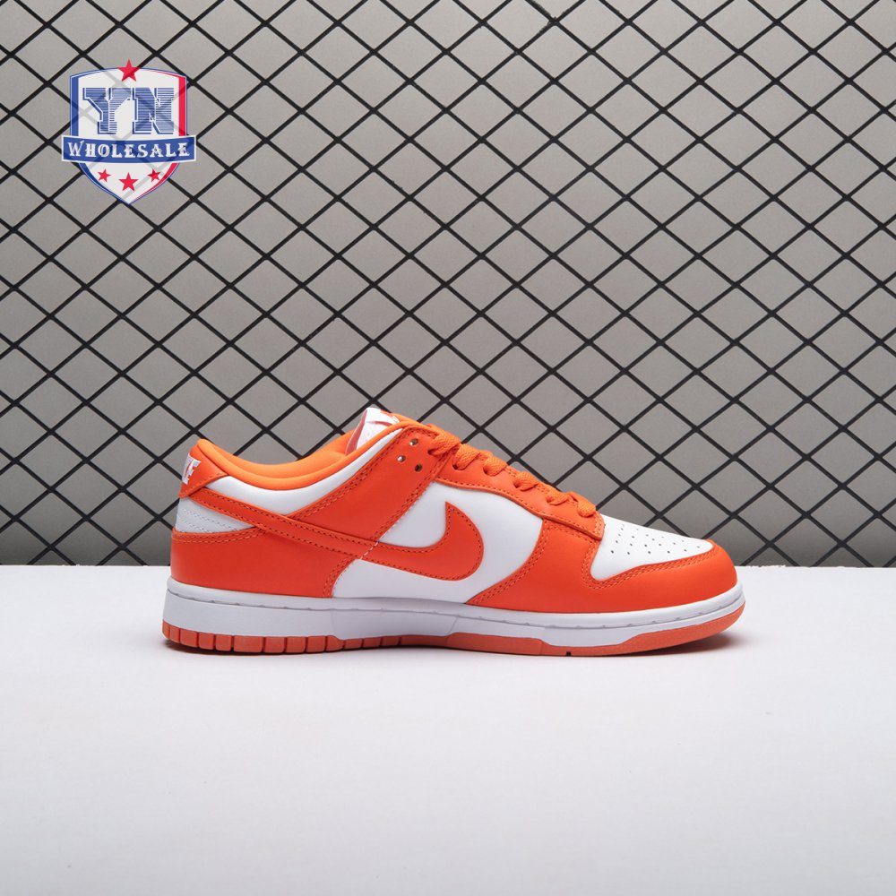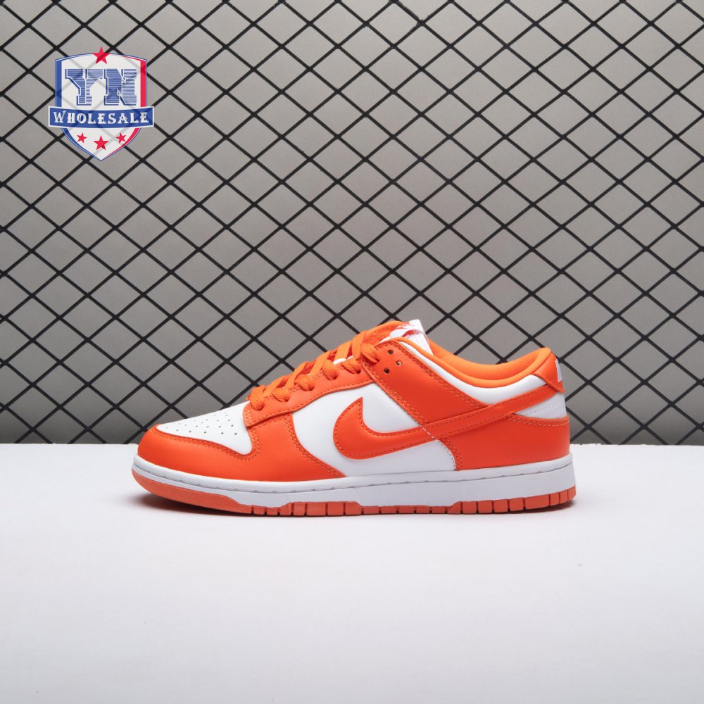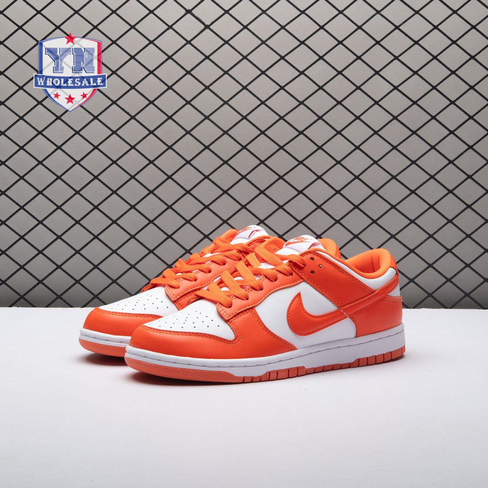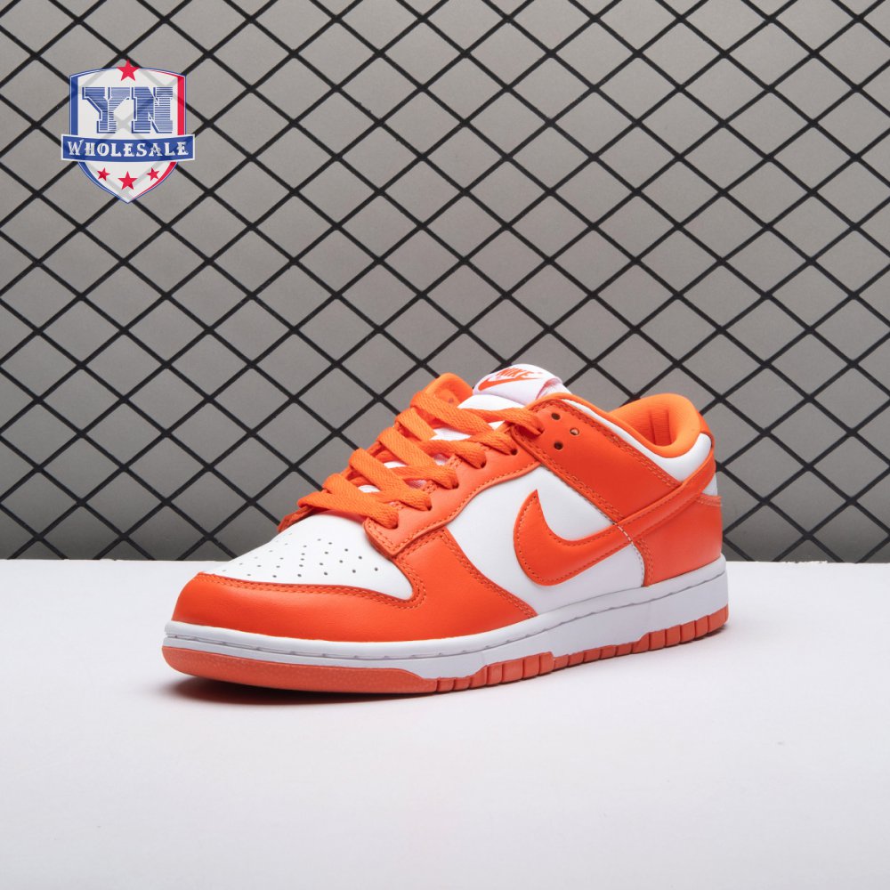 The Dunk Low Retro SP "Syracuse" celebrates the silhouette"s 35th anniversary with a classic colorway from Nike"s "Be True to Your School" series from 1985. The two-tone high-top Dunk that originally represented the University of Syracuse basketball team is reinterpreted as a versatile low-top. The all-leather upper combines a crisp white base with Orange Blaze overlays, complete with a woven Nike tag on the breathable mesh tongue.