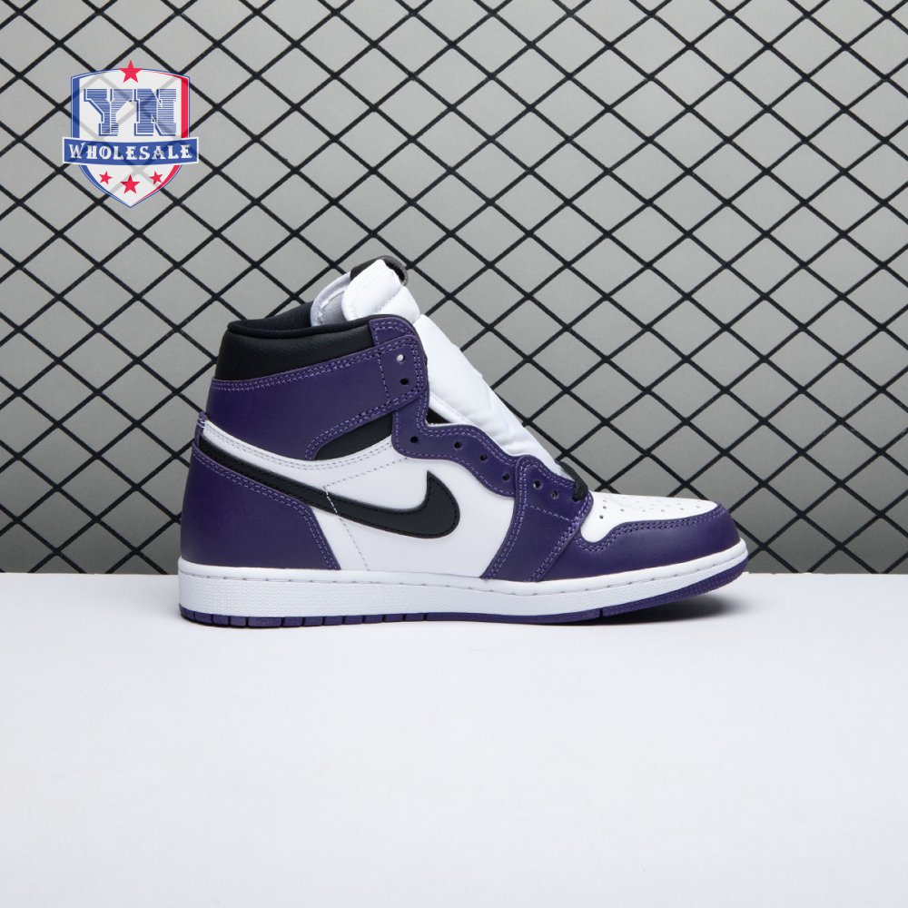 Launching in 2020, the Air Jordan 1 Retro High OG 'Court Purple 2.0' is a sequel of sorts to the 2018 colorway that also featured the same violet accents. Unlike its predecessor, this pair makes use of color blocking reminiscent of the OG "Chicago" colorway, with Court Purple replacing the red paneling of the original. The kicks are finished with a black Nike Swoosh and matching black at the laces and padded collar.