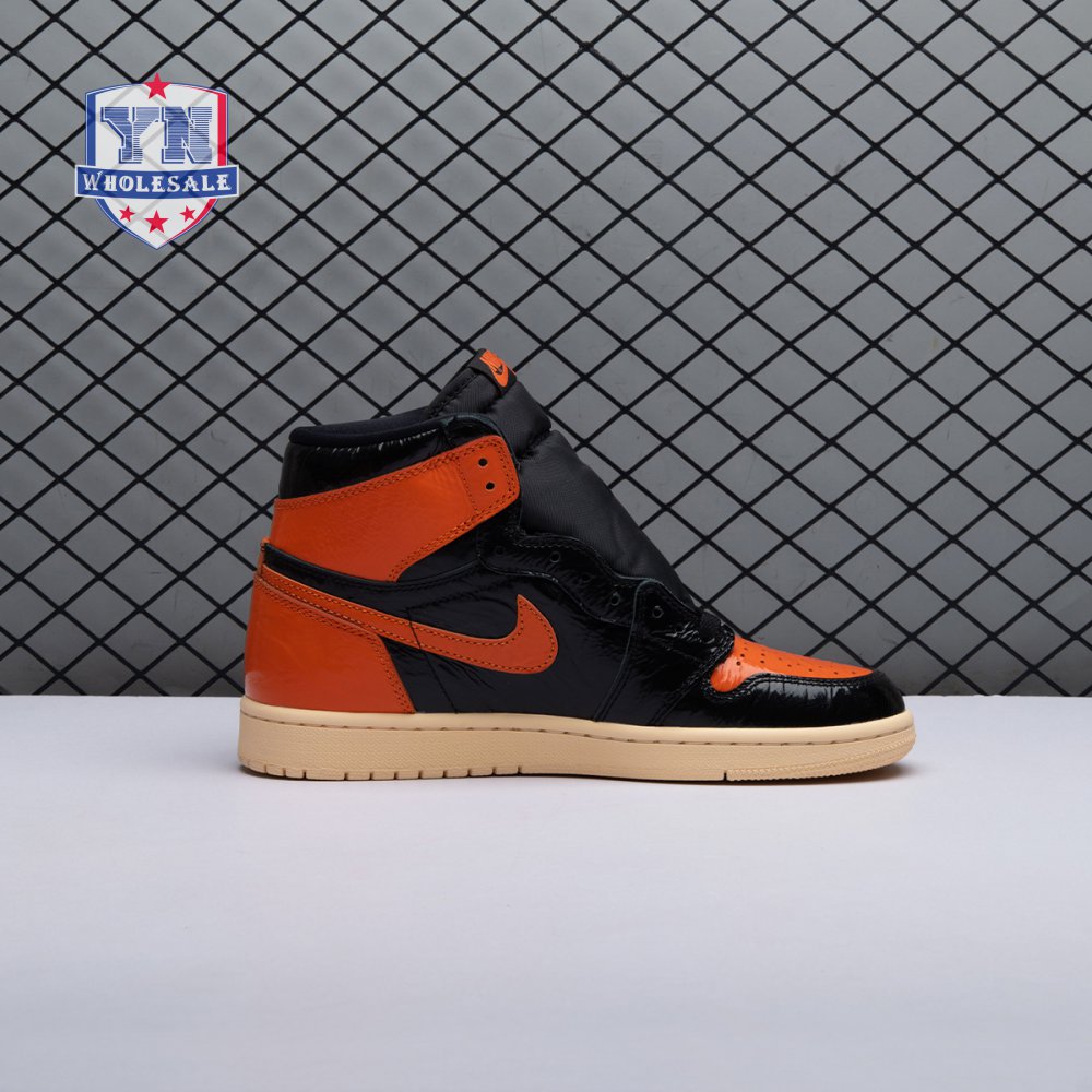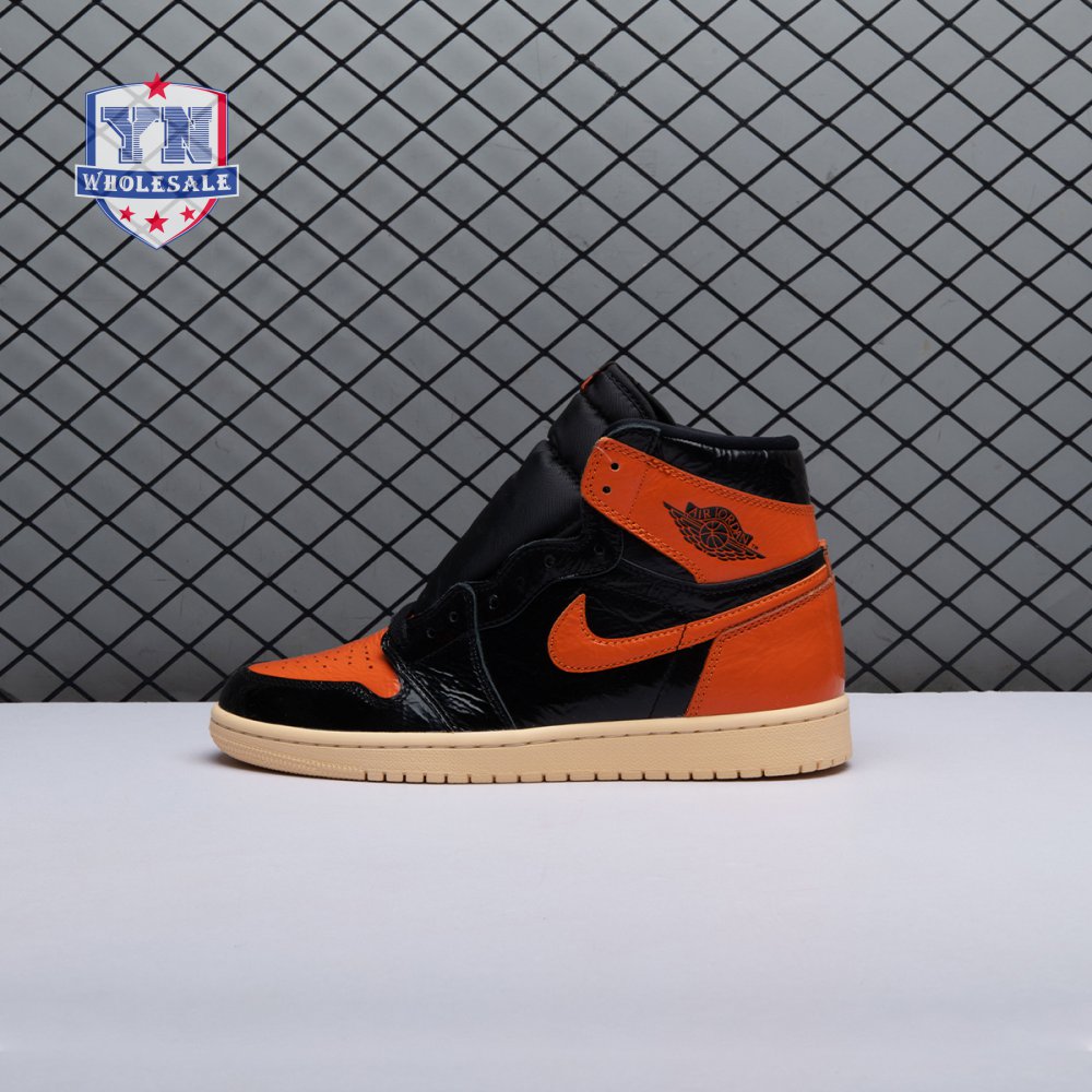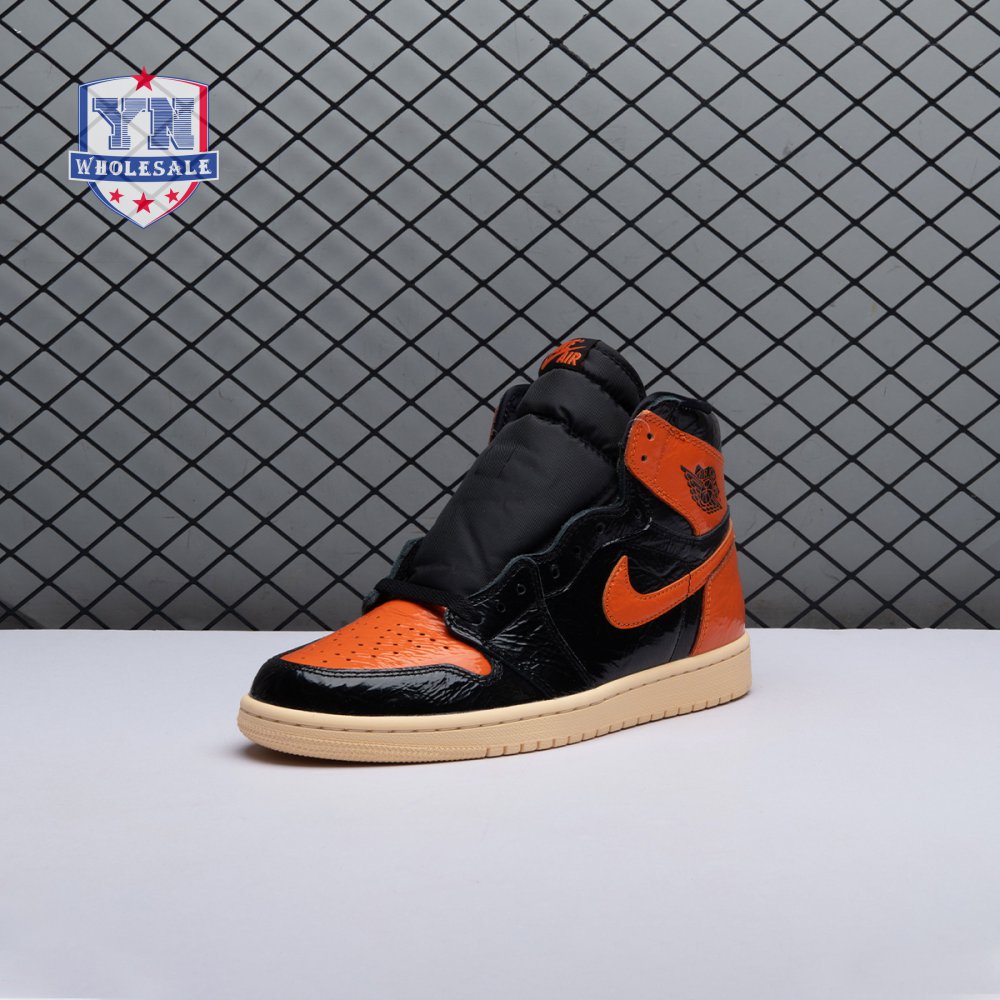 The Air Jordan 1 Retro High OG 'Shattered Backboard 3.0' revisits a coveted colorway inspired by a Michael Jordan backboard-breaking dunk that took place during a 1985 Nike exhibition game. The shoe's colorway of black, Pale Vanilla and Starfish matches the colors of the jersey MJ sported that day. Released in October 2019, this third edition of the sneaker features a crinkled, glossy patent leather upper that alludes to the hoop's broken glass, a fitting tribute to an early iconic moment.