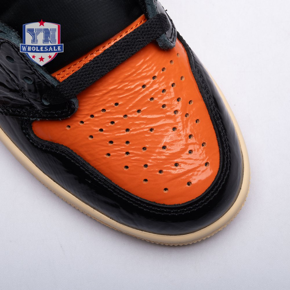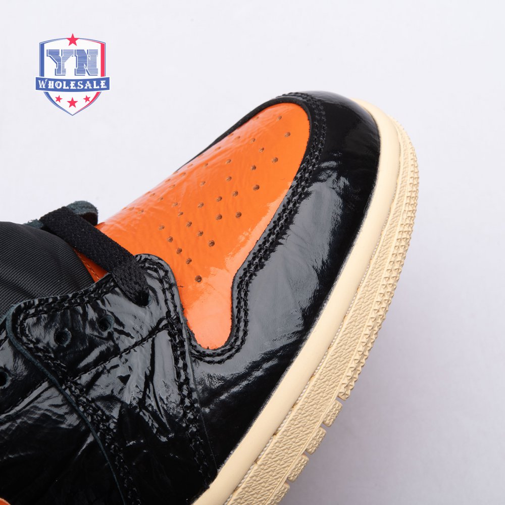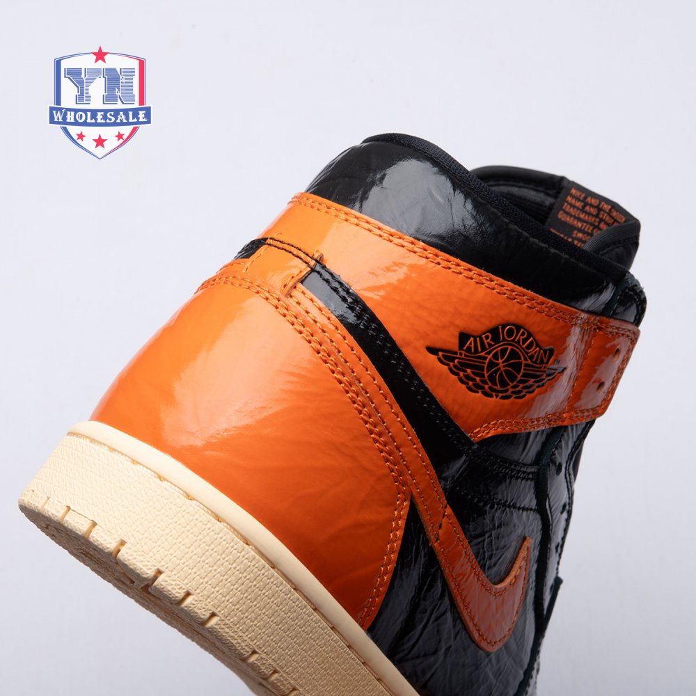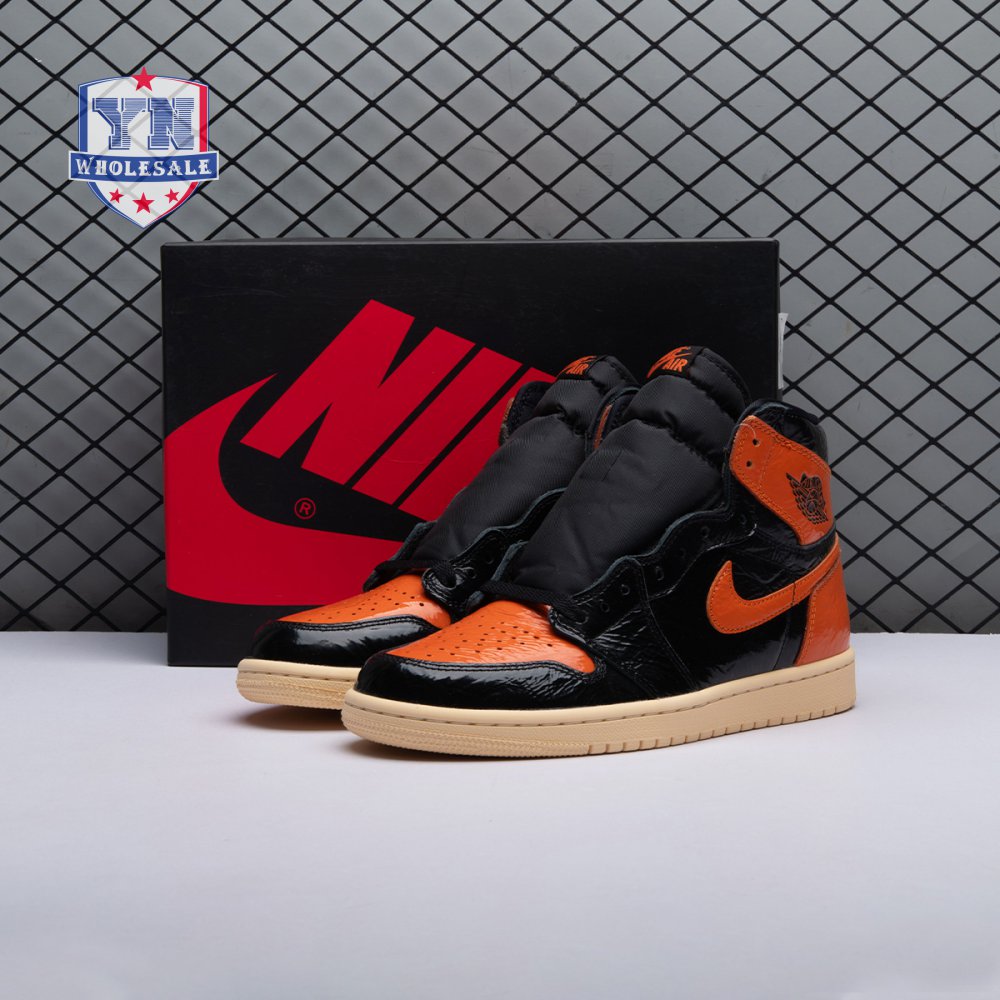 The Air Jordan 1 Retro High OG 'Shattered Backboard 3.0' revisits a coveted colorway inspired by a Michael Jordan backboard-breaking dunk that took place during a 1985 Nike exhibition game. The shoe's colorway of black, Pale Vanilla and Starfish matches the colors of the jersey MJ sported that day. Released in October 2019, this third edition of the sneaker features a crinkled, glossy patent leather upper that alludes to the hoop's broken glass, a fitting tribute to an early iconic moment.