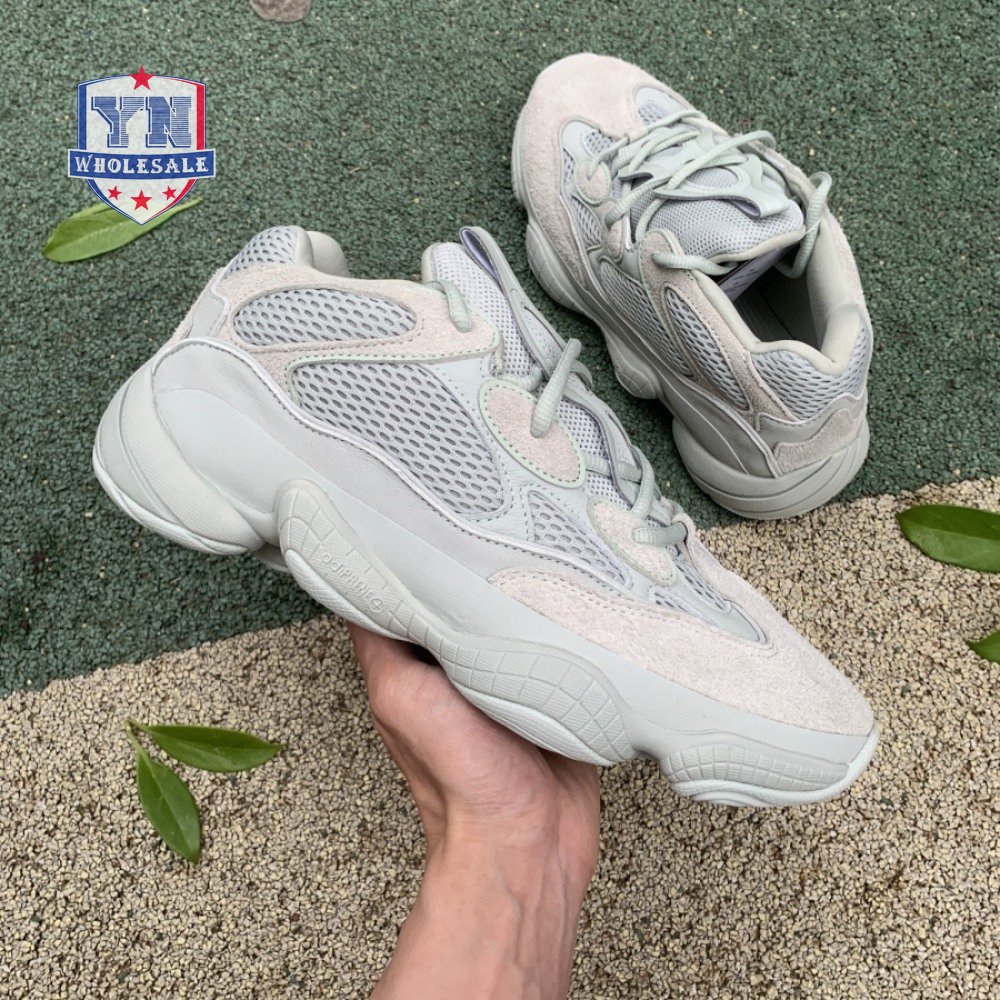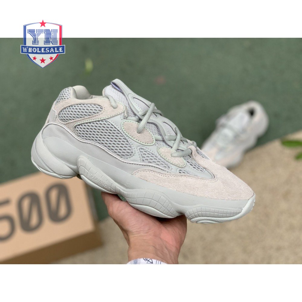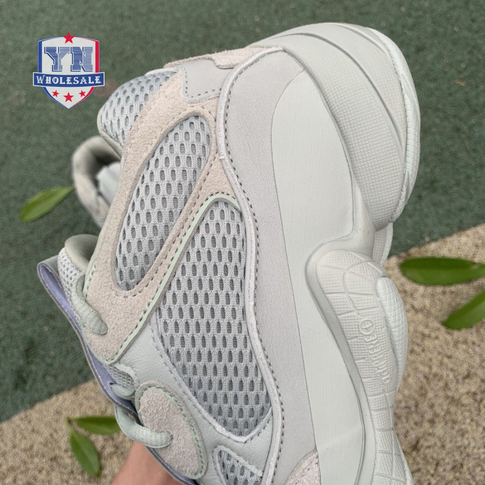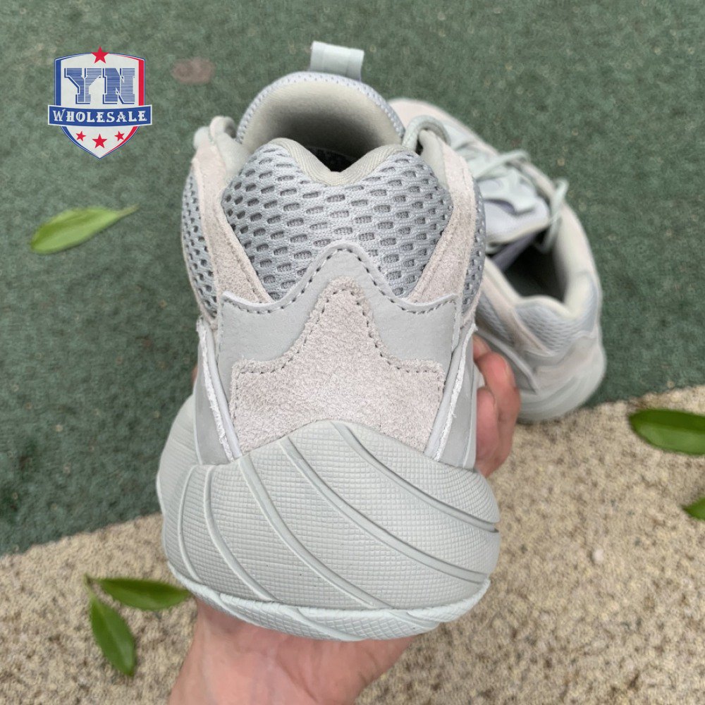 The Yeezy 500 "Salt" sticks with the same monochromatic design used on previous colorways of the bulky lifestyle silhouette. Here, a light grey shade is applied to the layered upper, built with a combination of cow suede, premium leather, mesh and nubuck accents. A rubber wrap atop the midsole provides added durability while reflective trim around the eyelets provide visibility in low-light conditions.
