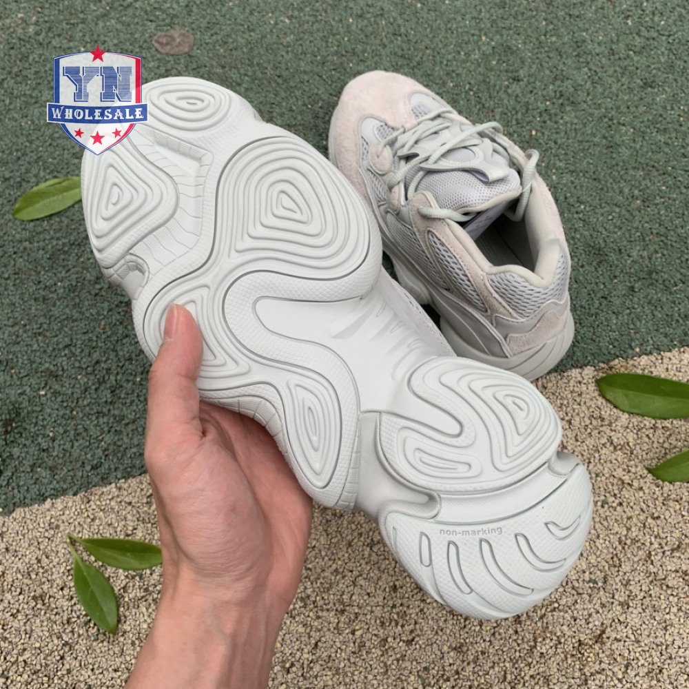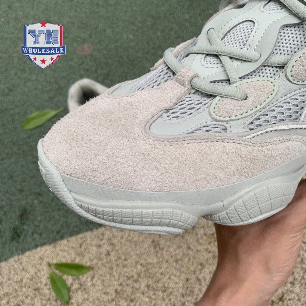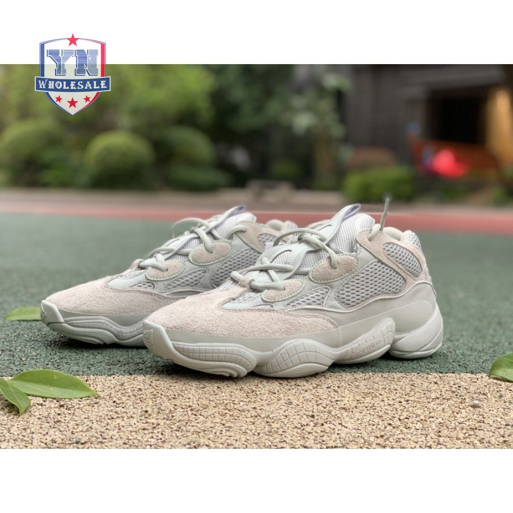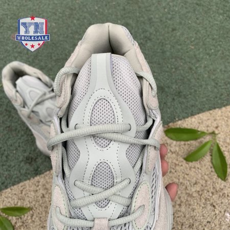 The Yeezy 500 "Salt" sticks with the same monochromatic design used on previous colorways of the bulky lifestyle silhouette. Here, a light grey shade is applied to the layered upper, built with a combination of cow suede, premium leather, mesh and nubuck accents. A rubber wrap atop the midsole provides added durability while reflective trim around the eyelets provide visibility in low-light conditions.