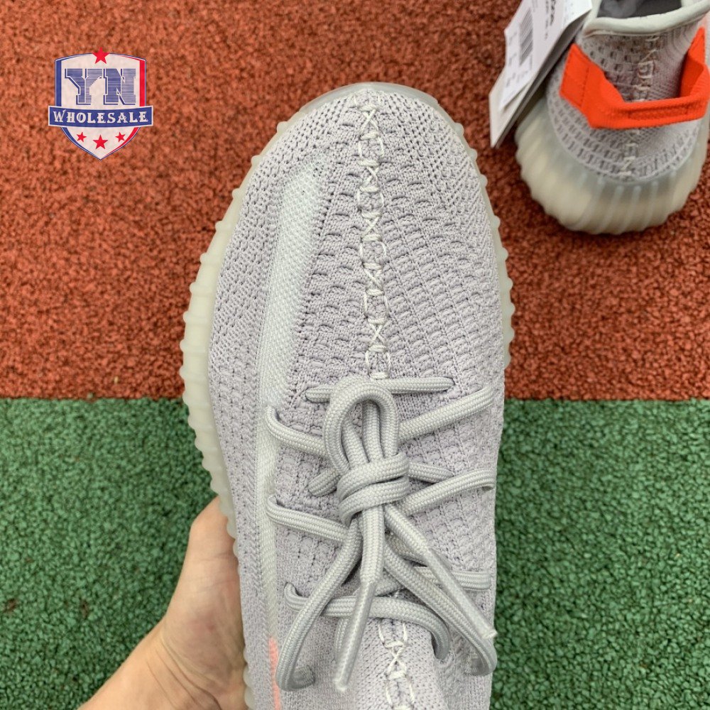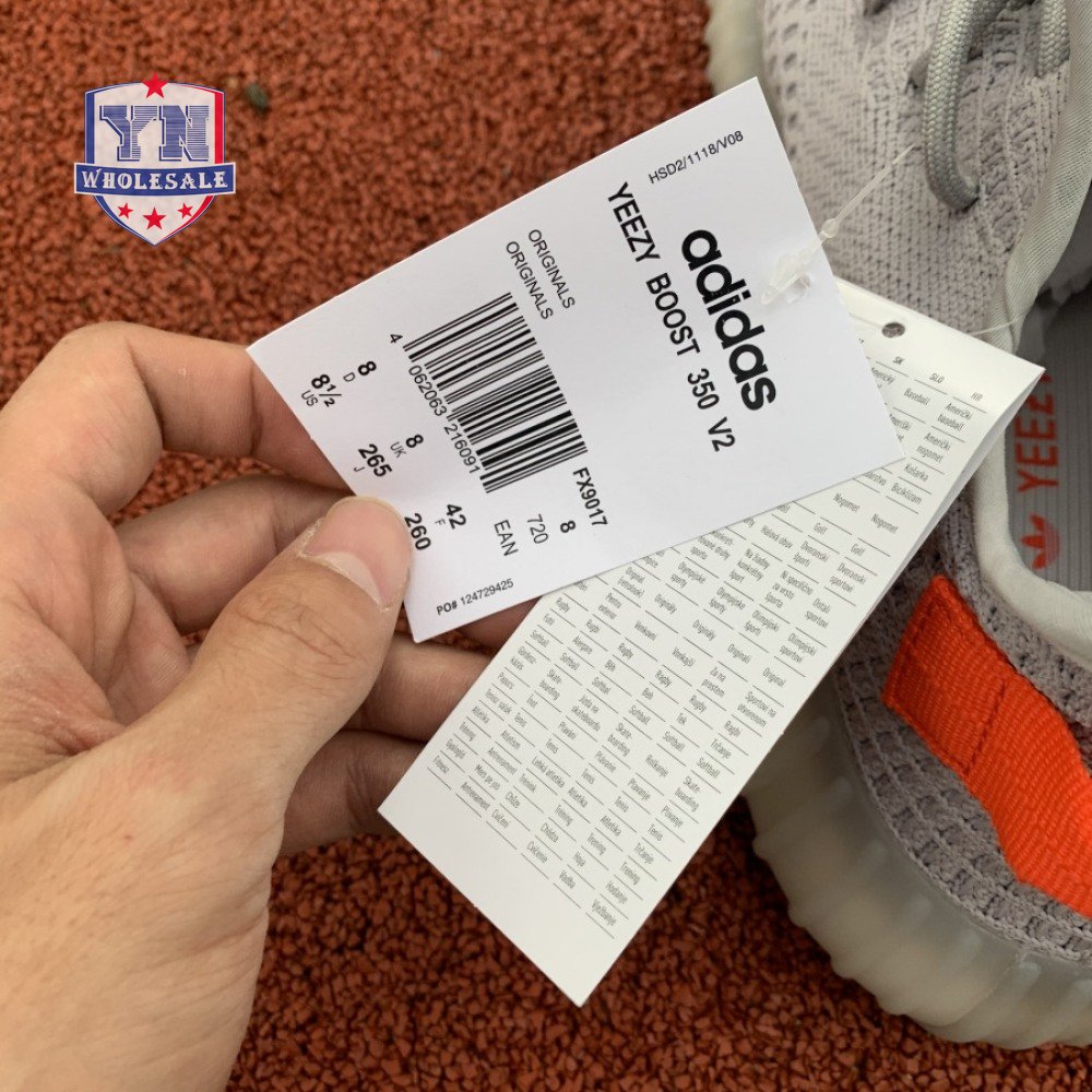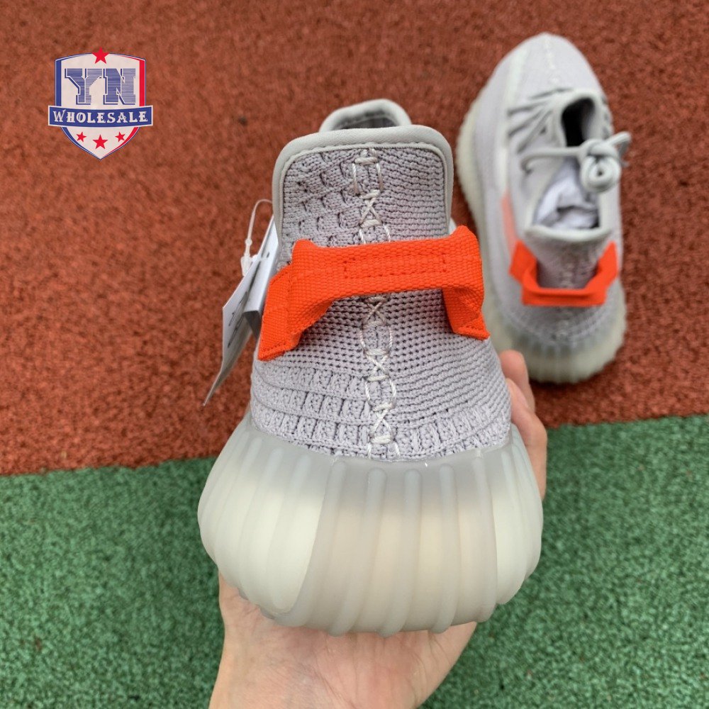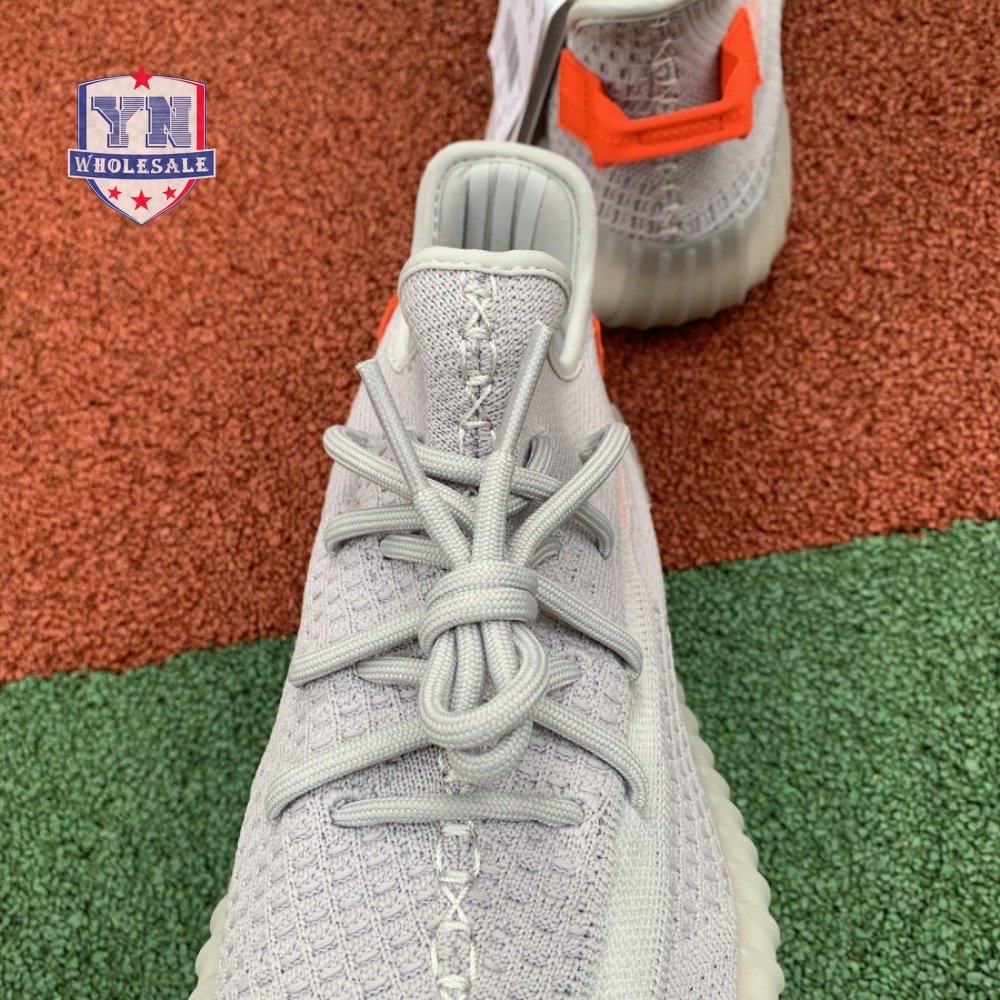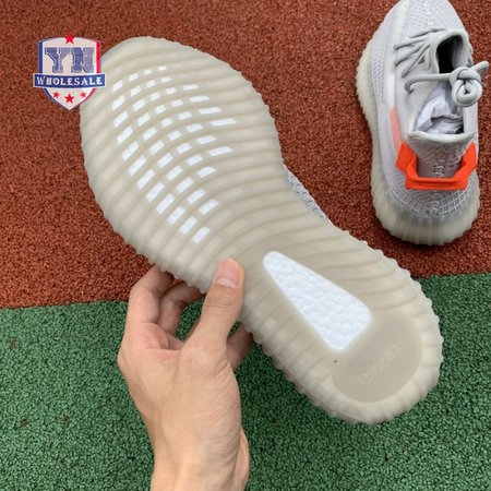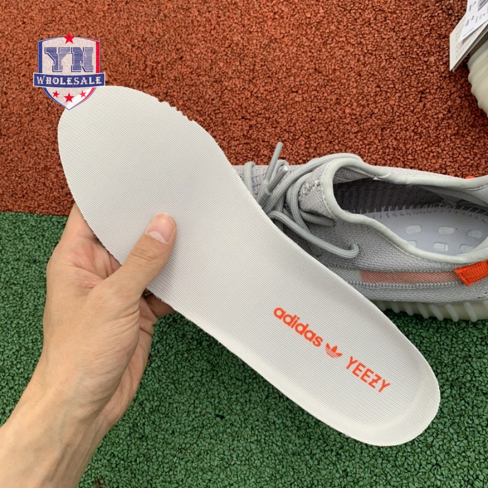 The Yeezy Boost 350 V2 'Tail Light' showcases a pop of bright orange at the stitched textile heel tab, along with a less concentrated shade of the same hue on the signature post-dyed monofilament side stripe. The rest of the upper is constructed from light grey Primeknit in a minimalist one-piece build, complete with a distinctive center stitch running down the vamp. A semi-translucent rubber midsole houses adidas Boost cushioning for a smooth ride. The 'Tail Light' colorway is only available in Europe, Russia and Ukraine.